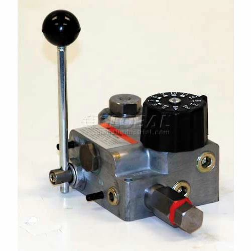 Buyers Hydraulic Spreader Valve, HV020, Valve Only, 20 GPM, 76 LPM, 2000 PSI, 140 BAR Single or Dual flow regulator with built-in on-off control plus system relief and pressure compensated Built-in differential style relief valve and on-off valve in a single compact body Permits easy installation with min. plumbing Detent hand knob for each flow control Easy to adjust flow, 11 positive positions Aluminum body All ports are 3/4″ NPT, except 1/2″ NPT spinner port Relief cartridge std. setting 1500 PSI (105 bar)