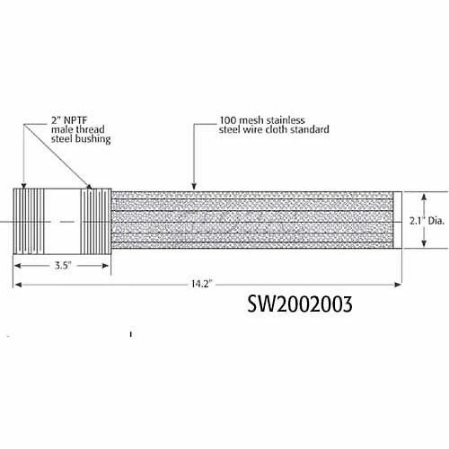 Buyers Tank Strainer, SW2002003, 2″ NPT Male Thd., 2″ NPT Port, 50 GPM 2″ NPTF Port 100 MEsh Standard Flow Rating: 49 GPM (5ft/sec) 3 PSI bypass(6″ Hg)